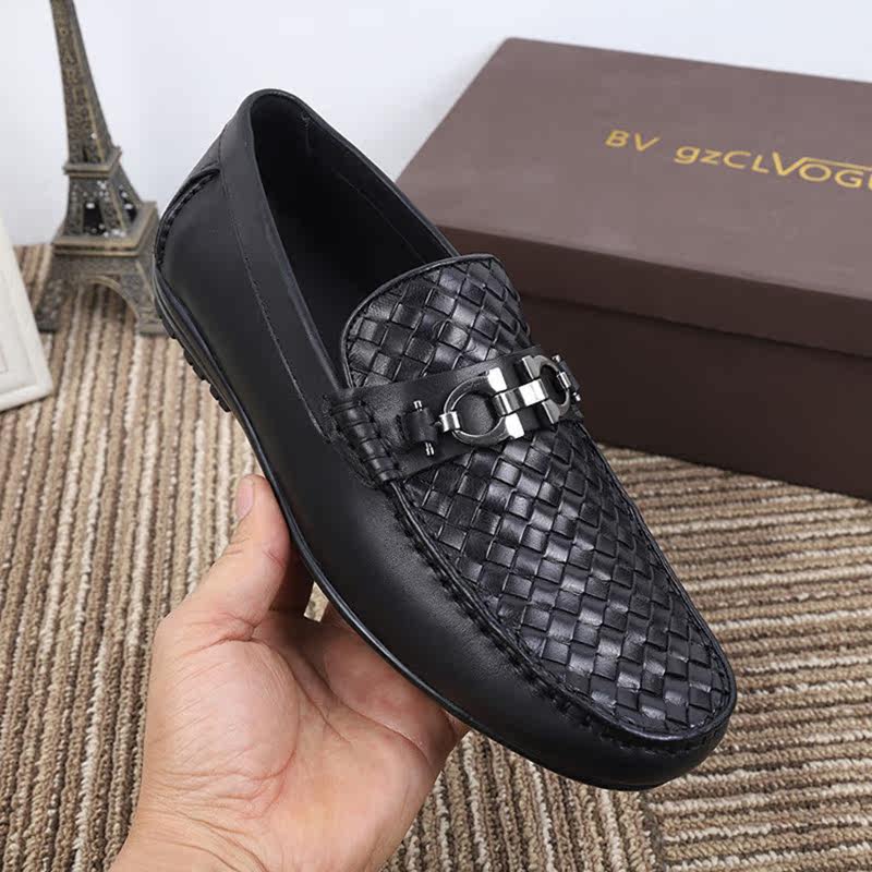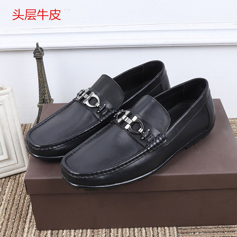 Summer high-end new metal buckle genuine leather casual leather shoes trendy brand European diamond slip-on men's shoes Korean version loafers