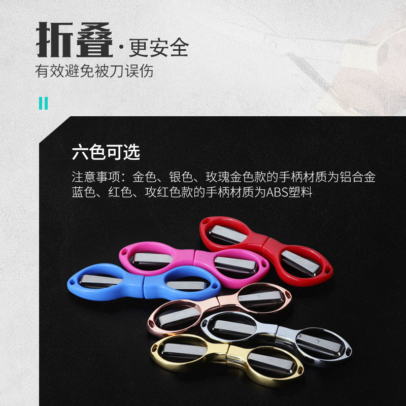 Gold metal handle folding scissors Silver white metal handle folding scissors Rose gold metal handle folding scissors Red plastic handle folding scissors Red plastic handle folding scissors Blue