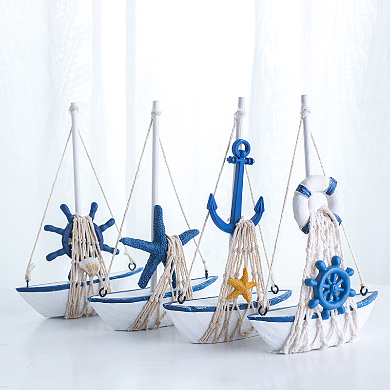 Mediterranean sailing model of a sailing boat creative desktop furnished wooden wooden wooden boat decoration crafts
