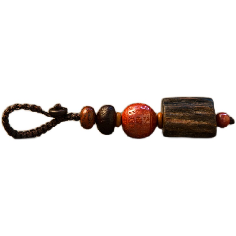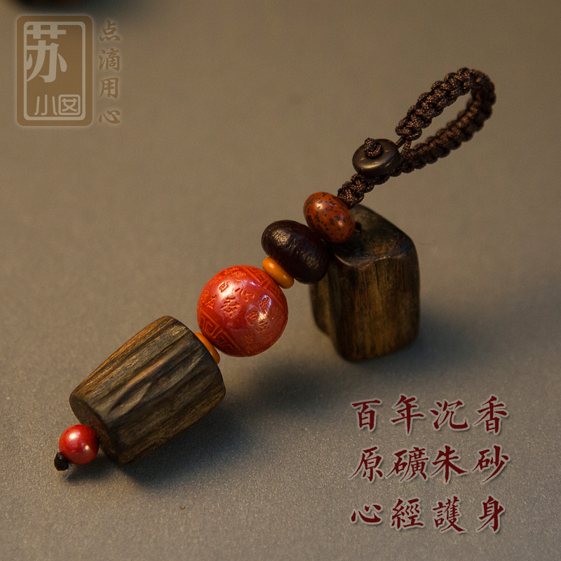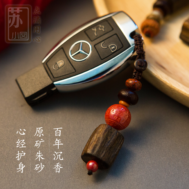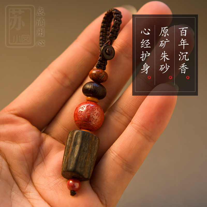 Natural Agarwood Raw Ore Cinnabar Heart Sutra High-grade Ping An Car Key Chain Chain Pendant Decorative Gifts Men and Women