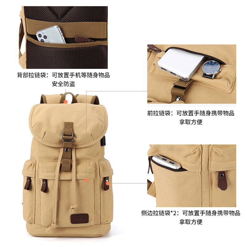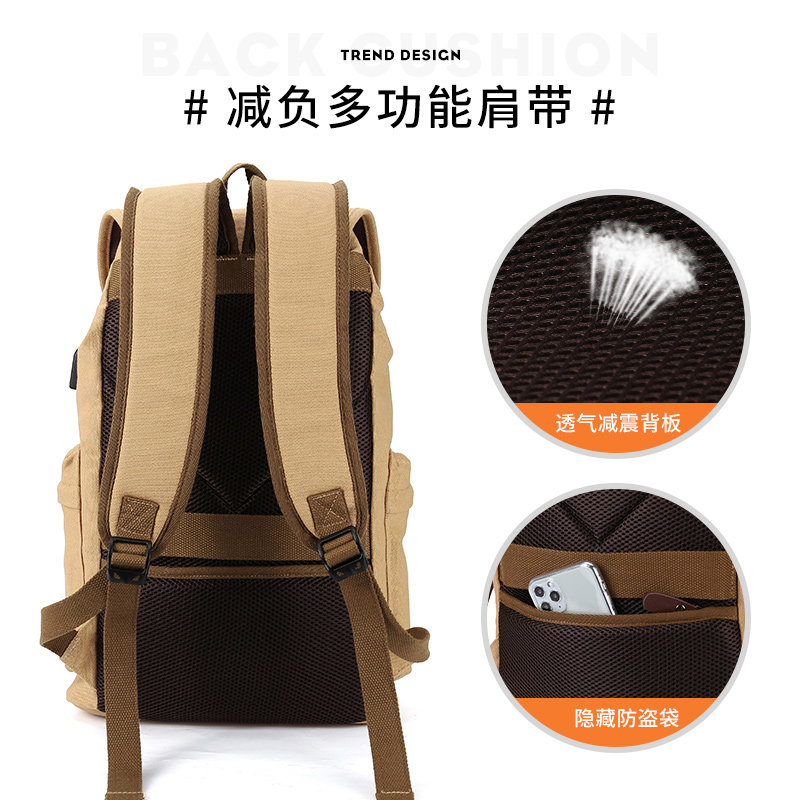 Men's backpack canvas backpack double shoulder light large capacity travel leisure simple travel fashion trend college student school bag