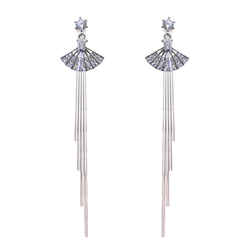 Fan-shaped earrings hanging four-line tassel fan-shaped earrings hanging four-line tassels , sending friends fan-shaped earrings hanging four-line tassels , sending girlfriends