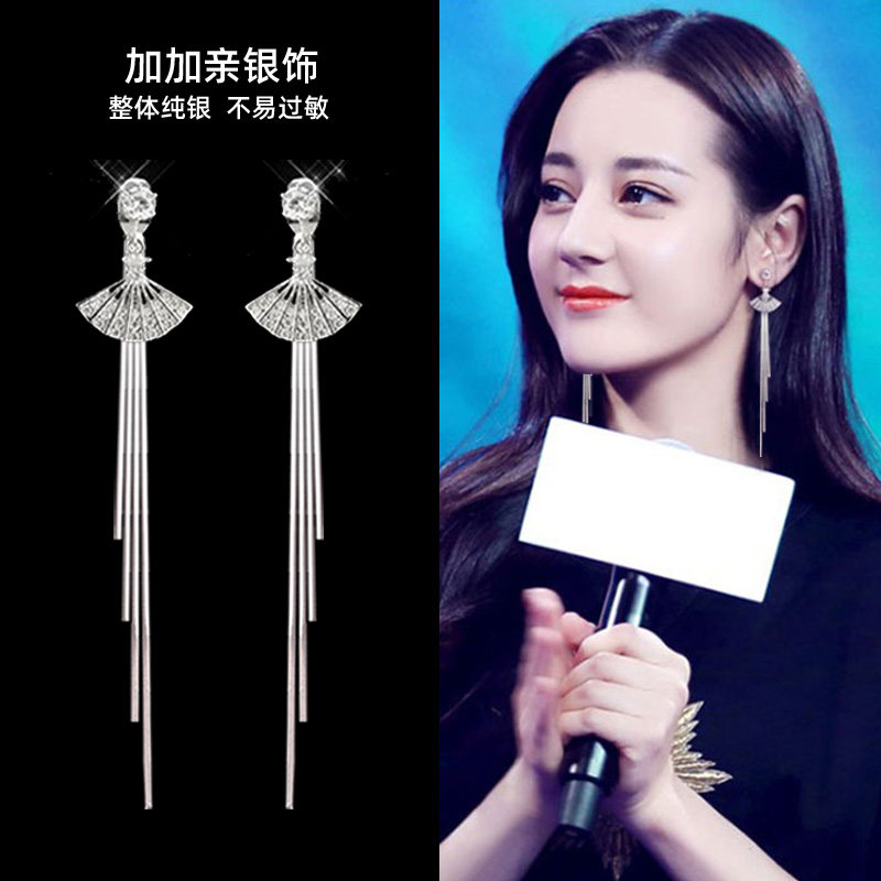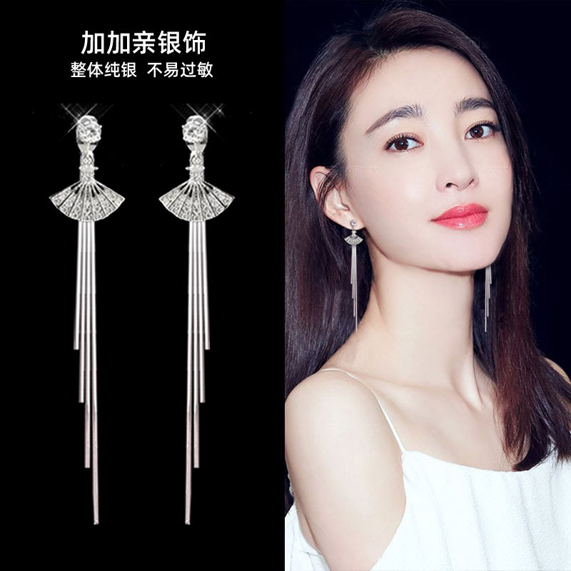 One-style two-wear earrings 2020 new moisture anti-allergy super fairy long version Korean temperament ear pin women pure silver exaggerated earrings