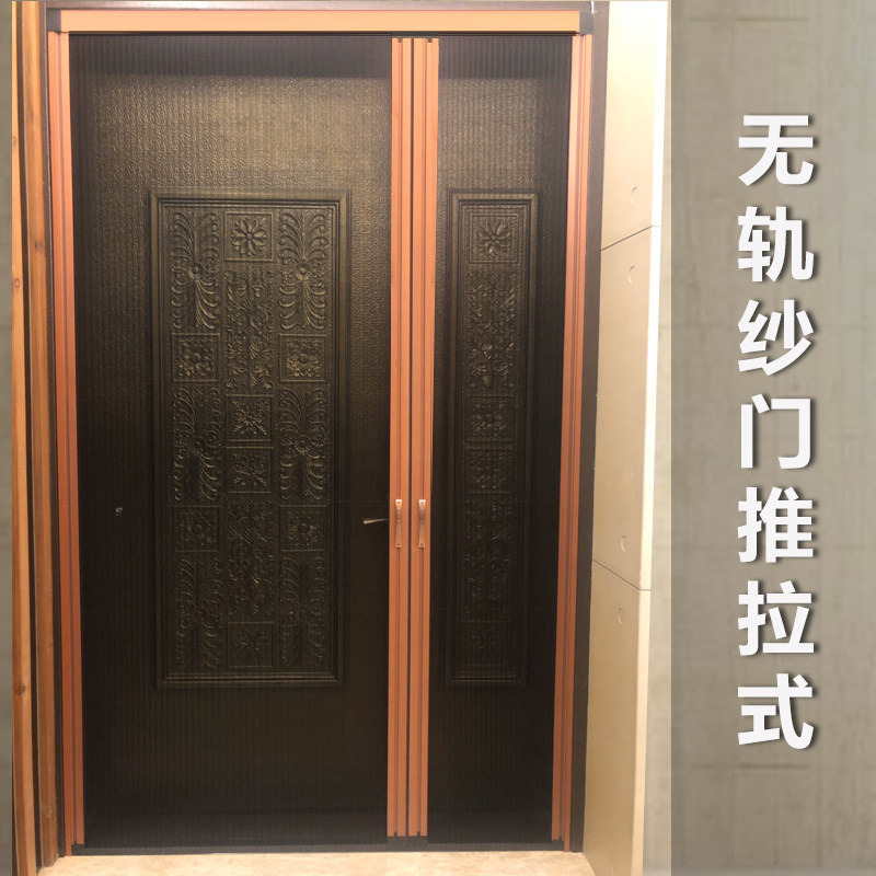 Trackless yarn door folding invisible veil door mosquito repellent washed aluminum alloy doors and windows telescopic push-pull window screen door open