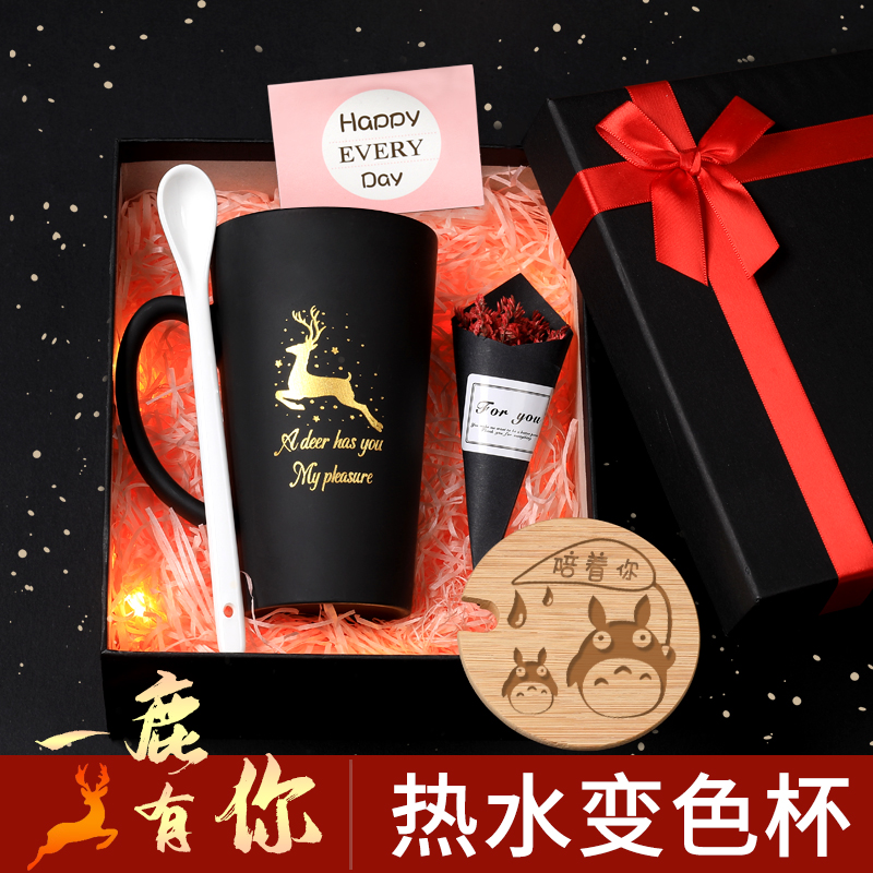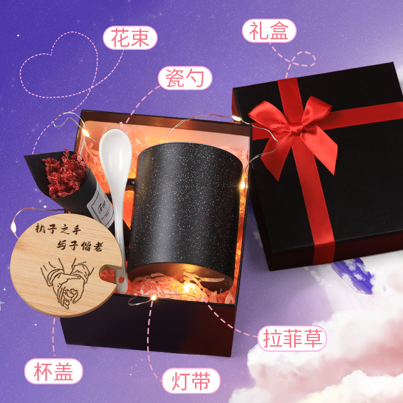 Starry Black Deluxe Pack 1 (Cup Gift Box Porcelain Lid Porcelain Spoon Raffia Bouquet Light Strip) Starry Black Deluxe Pack Two (Cup Gift Box Lettering Cup Lid Porcelain Spoon Raffia Bouquet