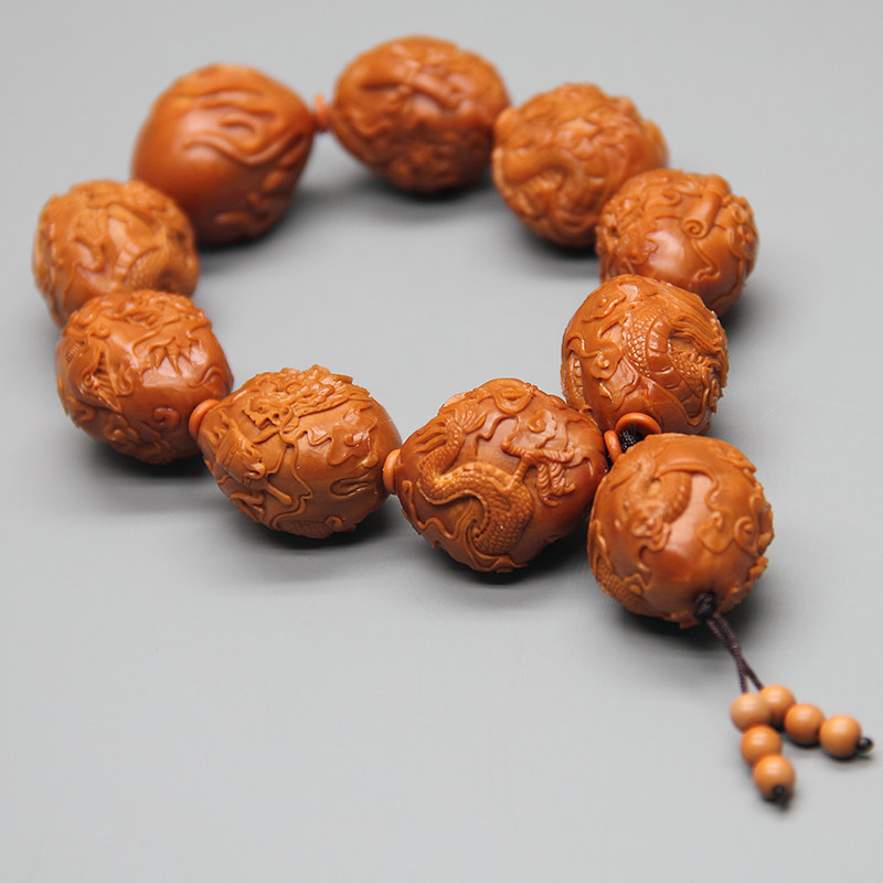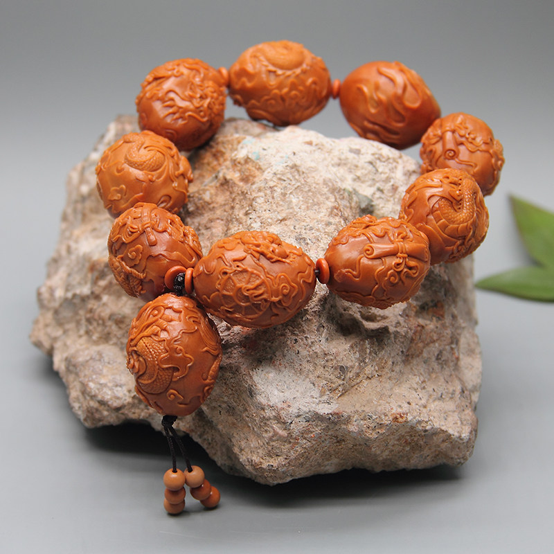 Zhoushan olive core carving bracelet pure hand-made nine dragons play bead carving hand chisel men's large seed olive beard handle