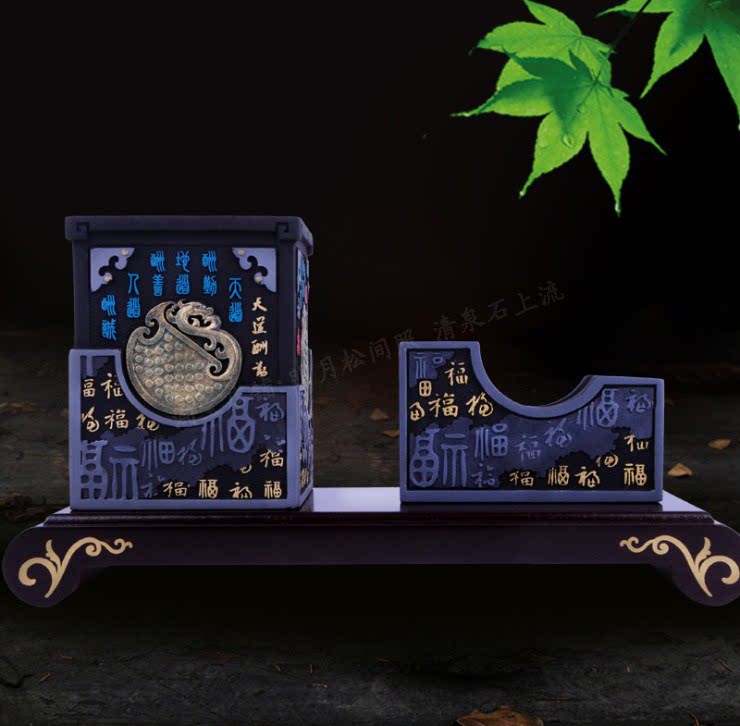 Charcoal carving crafts pen holder office business meeting pieces bank school gifts practical desk decoration