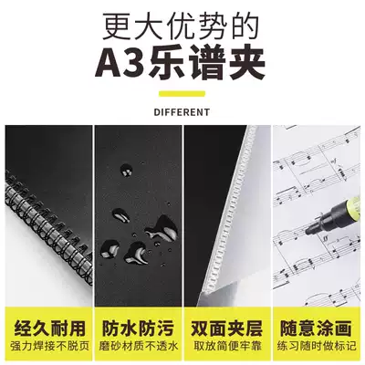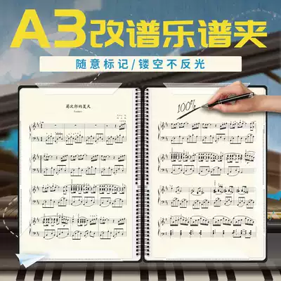 A3 plastic pp material cover score clip 15 pages can be put 30 scores (eye protection can be modified without reflection) A4 black leather sheet music clip clip four holes can be changed score 20 pages can put 40 scores