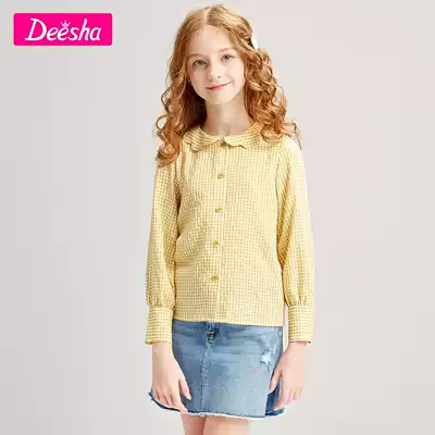 Desha girls long shirt 2021 spring and autumn new big Tongbao plaid foreign school college cotton jacket top