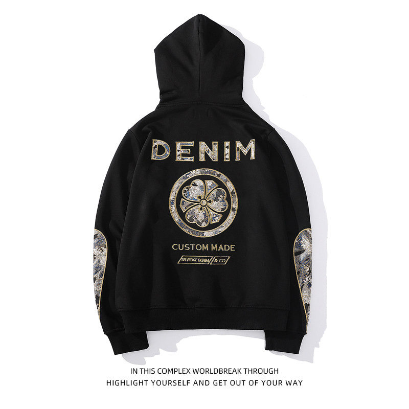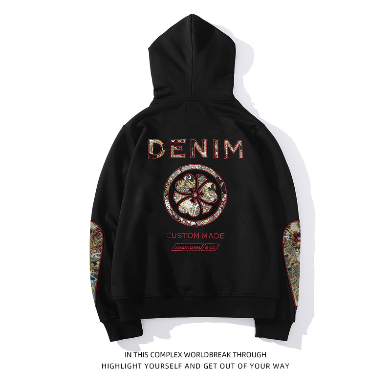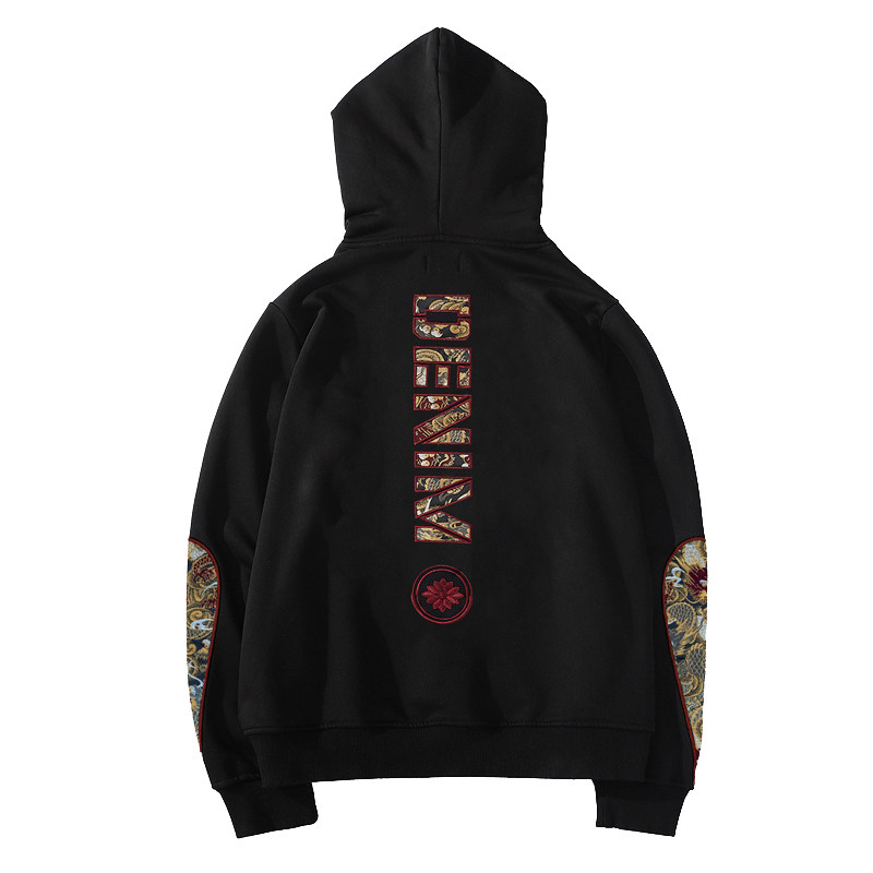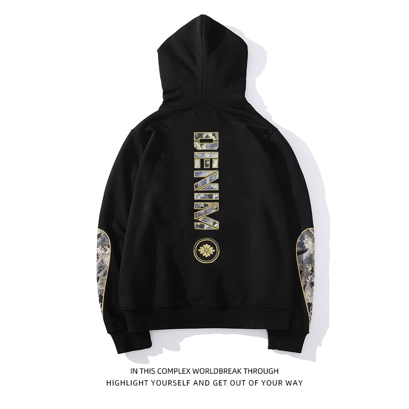 Spring autumn Men's Guochao Lianhood Sports Shirt Day Embroidered Kirin Arm Drop Sleeve Personality Blouse Lovers