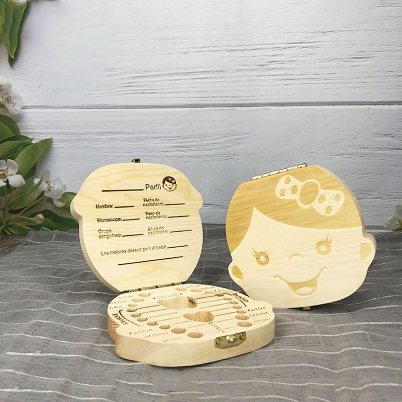 Children's Chinese and English deciduous tooth box tooth collection storage storage box fetal hair storage box tooth change commemorative box male and female