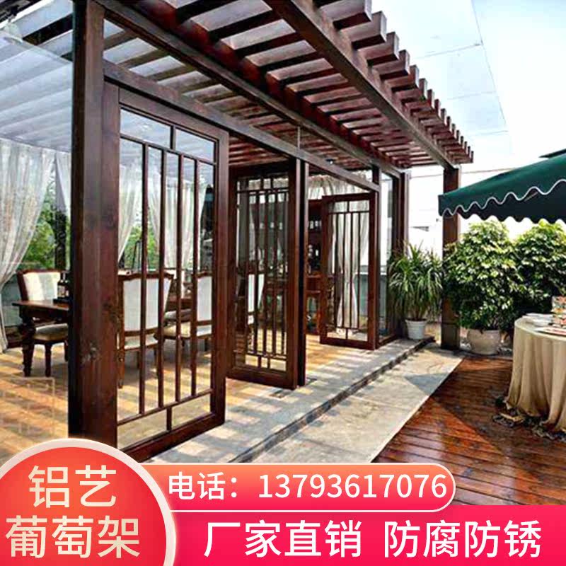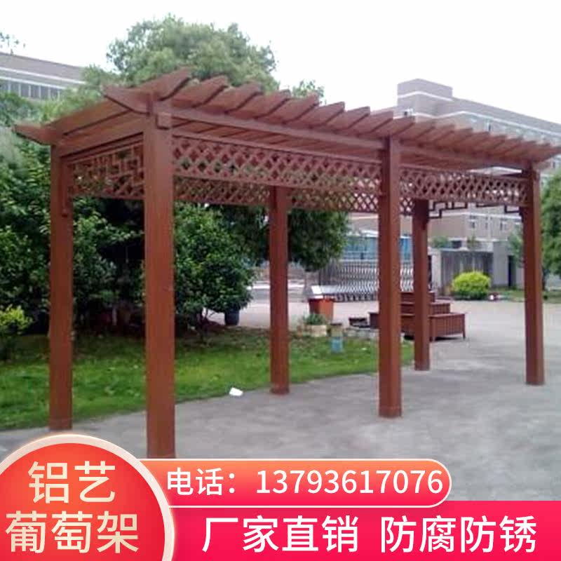 Aluminum art Aluminum alloy imitation wood grape rack Outdoor flower rack climbing rattan villa courtyard Garden porch rack Simple shelf customization