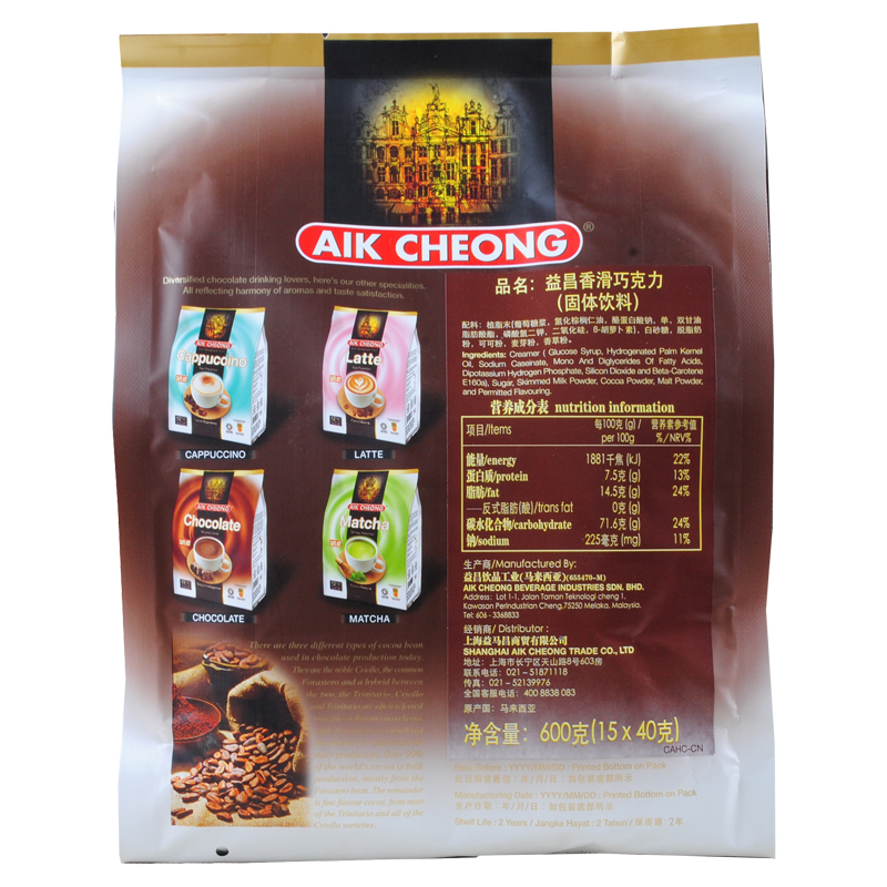 Malaysia's Yanchang Old Street Fragrant Slip Chocolate Cocoa Powder KOKOO Hot Chocolate 600gX2 Bagged 30 Bars