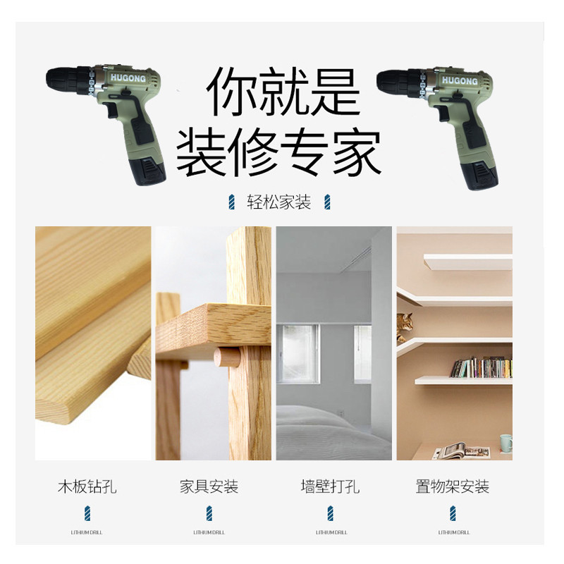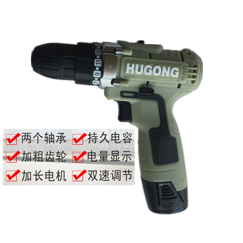 Hugong handheld electric drill rechargeable drill household multi-function screwdriver electric screwdriver mini electric 12V lithium electric drill