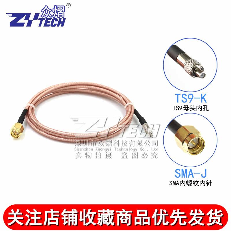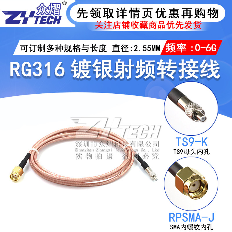 RF shielding silver plated coaxial line SMA inner needle bore turning TS9 mother head RPSMA-JK TS9-KRG316 switching line