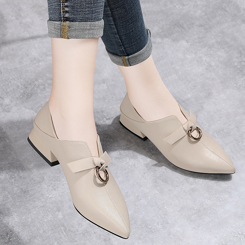 Soft leather small leather shoes 2022 spring and autumn new thick heel shoes British style all-match women's pointed toe low-heeled women's shoes