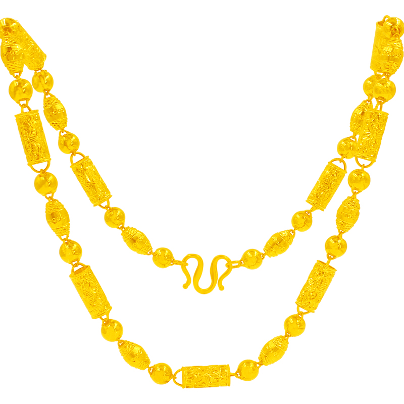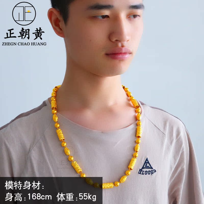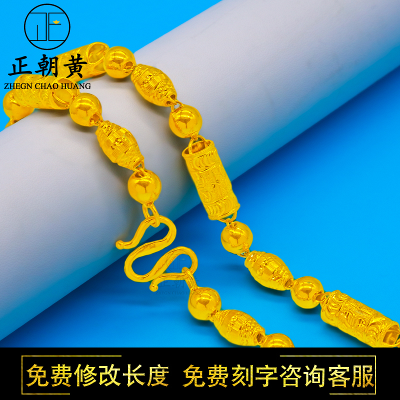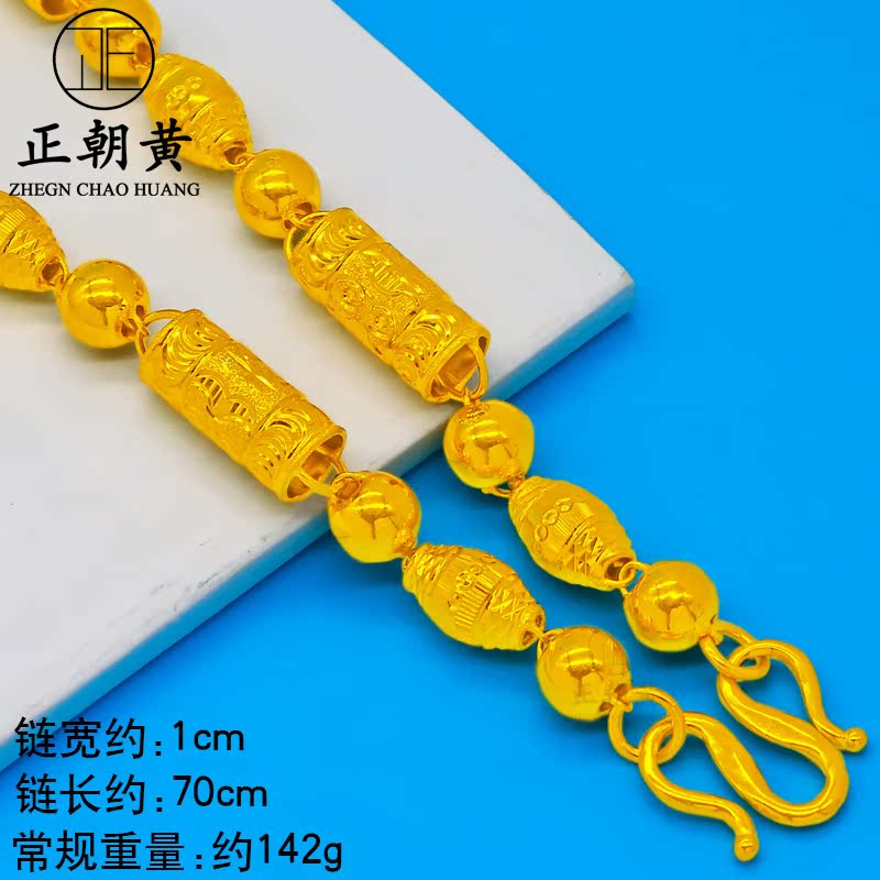 Plated Sand Gold Necklace Men's Coarse Large Hollow Beer Barrel Chain Sub Transfer Beads Emulation Gold Necklace Strips Lengthened for a long time