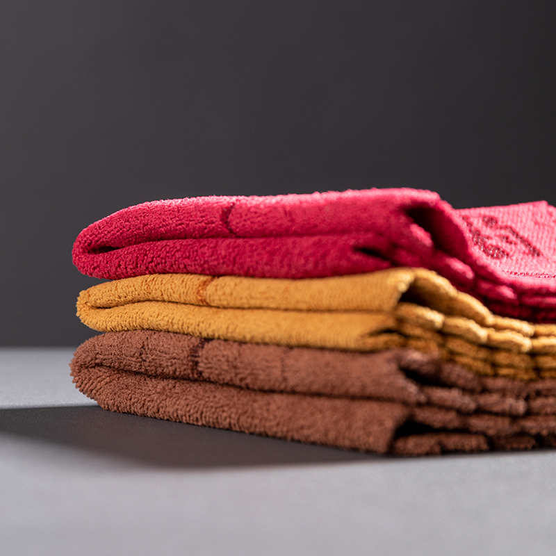 Orange lotus rhyme tea towel Wine red Lotus Rhyme tea towel Brown Lotus Rhyme tea towel
