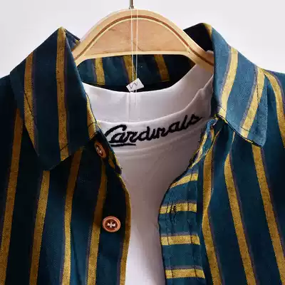 Spring boys' shirt long sleeve 2021 new spring and autumn boys children cotton shirt striped foreign pie coat tide