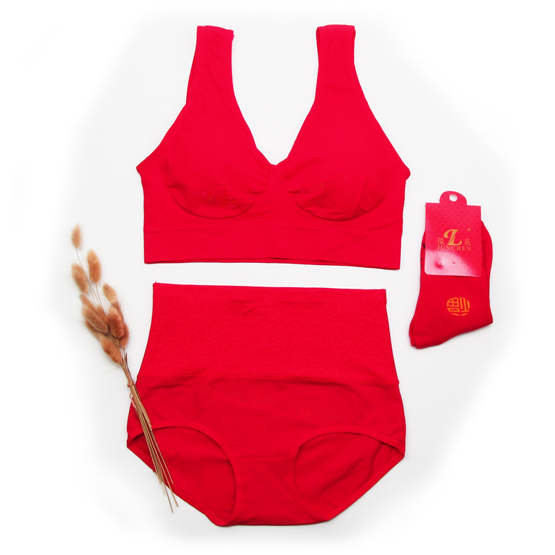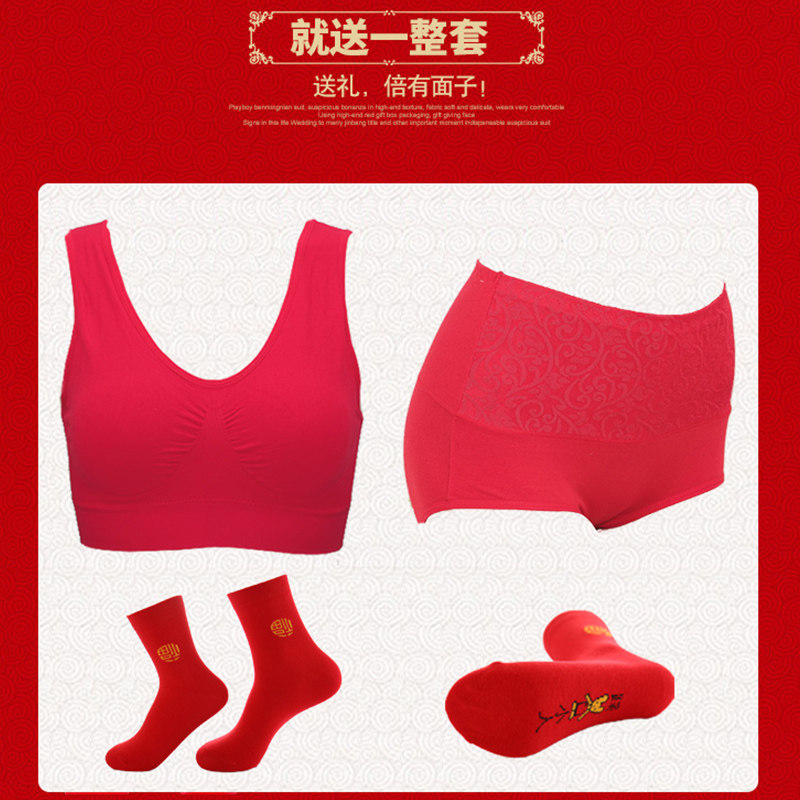 Benming year red underwear suit female middle-aged and elderly without steel ring bra panties elderly bra is a tiger vest mother