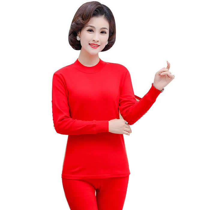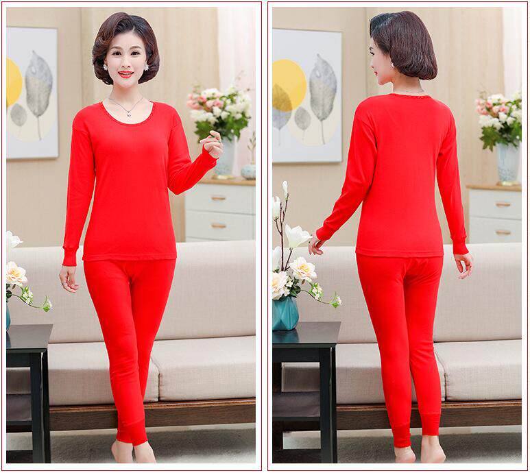 This Life Year Pure Cotton Middle Aged Woman Fever Sweater Pants High Collar Cotton Sweater Pants Red Mother Autumn Clothes Suit