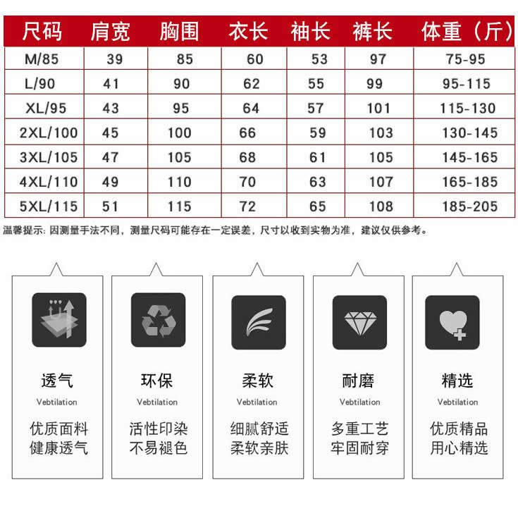 M (70 ~ 95 catty) L (95 ~ 115 catty) XL (115 ~ 135 catty) XXL (135 ~ 155 catty) XXXL (155 ~ 170 catty)