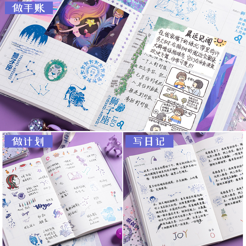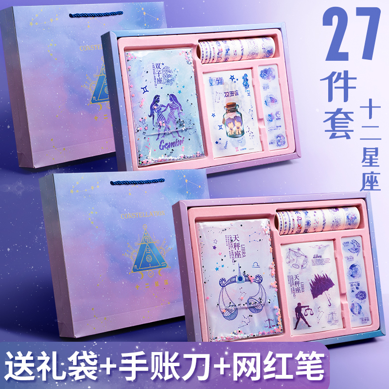 Net red hand book Simple style Cherry blossom twelve Constellations hand book This art exquisite notebook girl's heart Chinese style retro quicksand cute tool material gift box Full set of student stationery