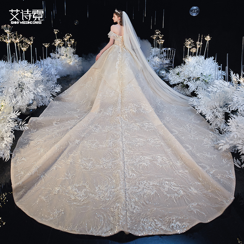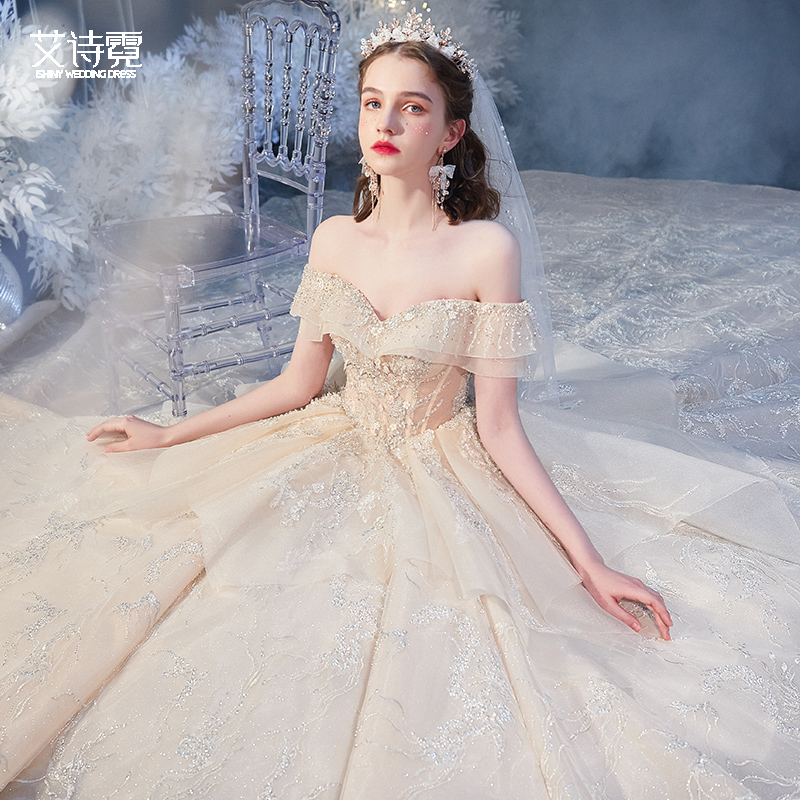 Wedding dress 2023 new bride French shoulder palace wind heavy industry luxury high temperament and lean princess summer