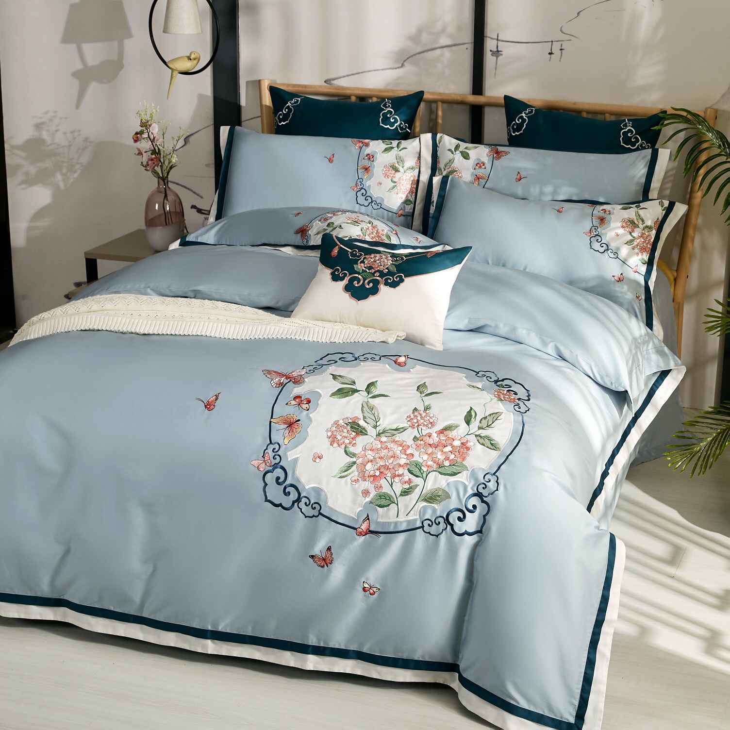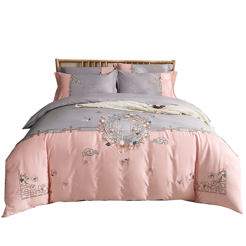 Chinese bedding warm embroidery bed four-piece set Housewarming new home gift thickened cotton cotton quilt cover plush cotton
