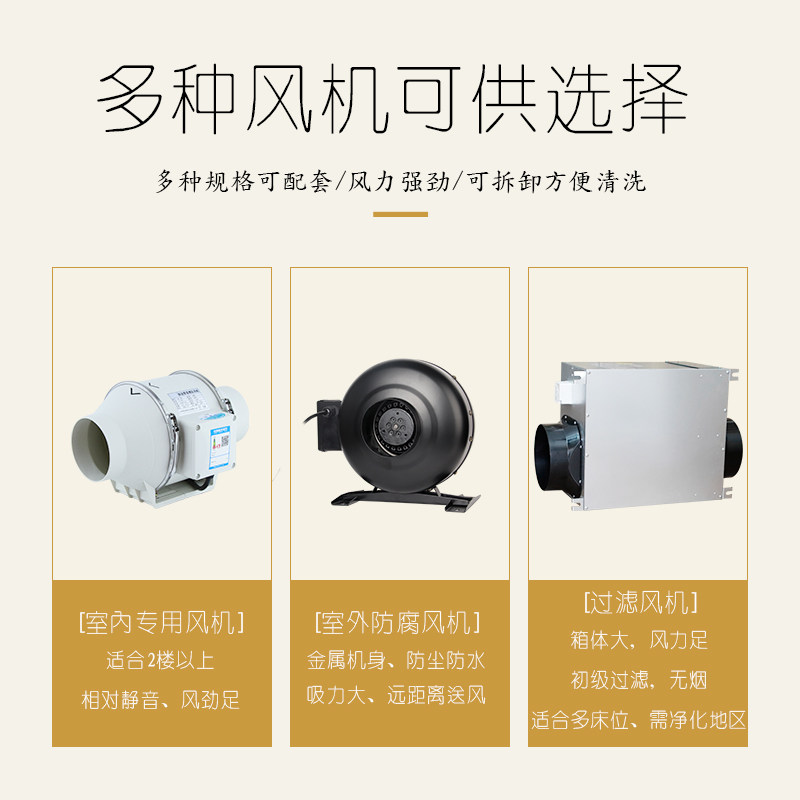 Single set of smoke exhaust system (without ventilator) 1 bed (indoor ventilator 100P transparent round cover) 1 bed (outdoor ventilator 100P transparent round cover) 2 beds (indoor ventilator 150