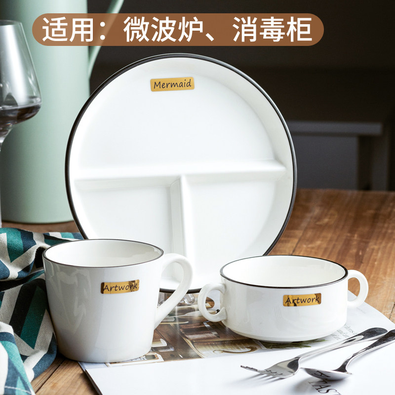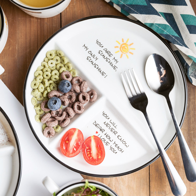 One Person Eating Cutlery Breakfast Pan Ceramic Mesh Red Nordic Ins Wind Home Divided Meals Children Sub-Bowl Suit-Taobao