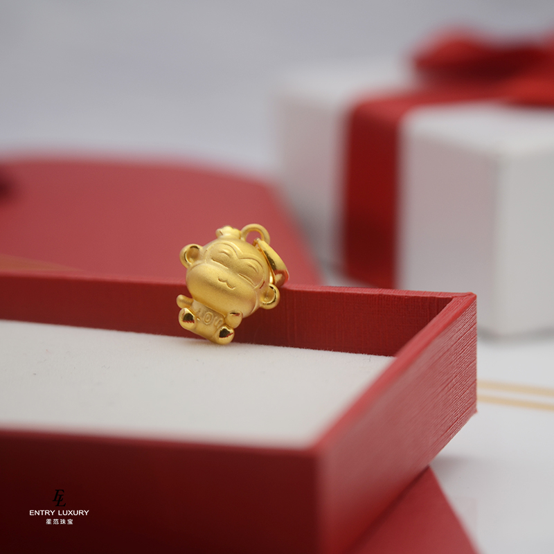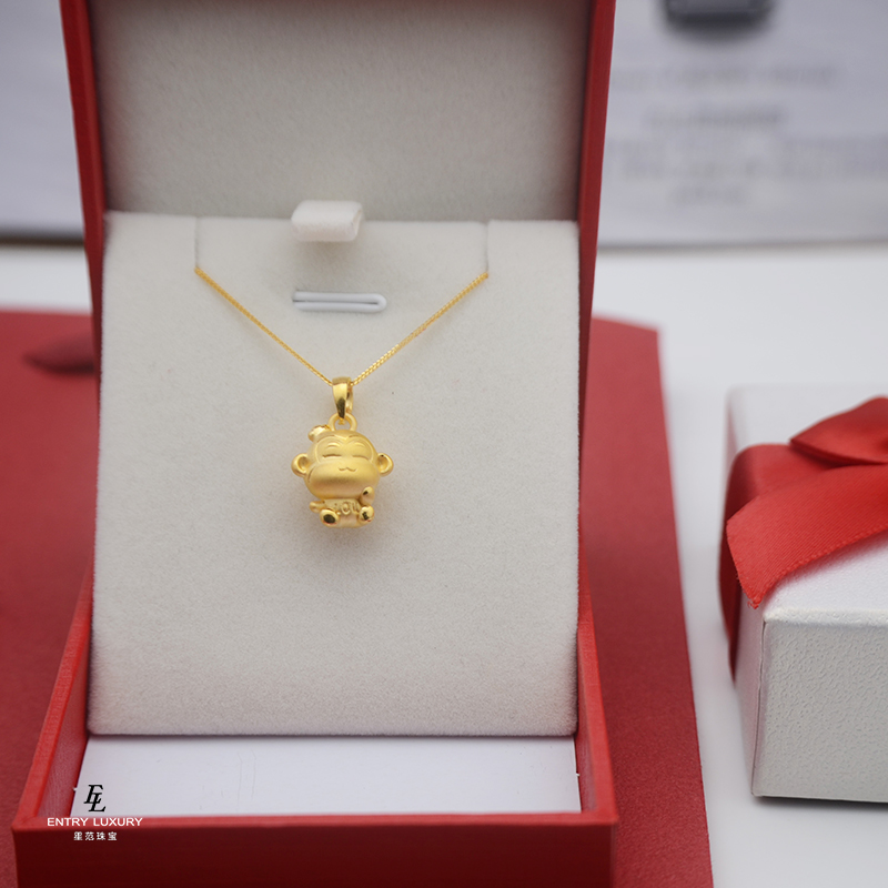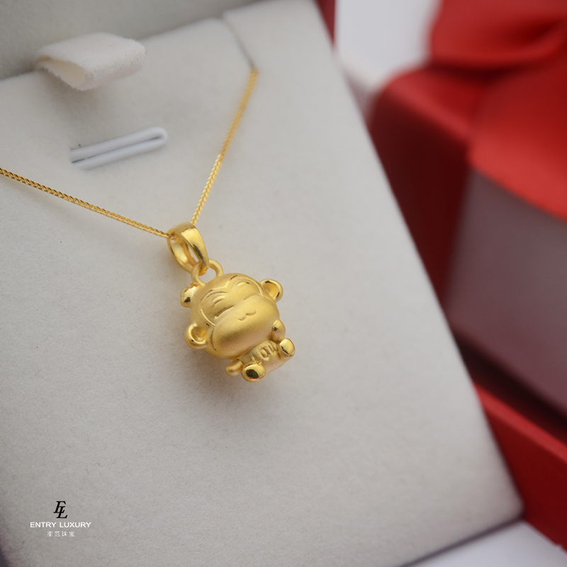 Foot Gold 999 Pure Gold Zodiac Monkey LOU Monkey Baby Gold Pendant 3d Hard Gold Transshipment Pearl Necklace Pendant