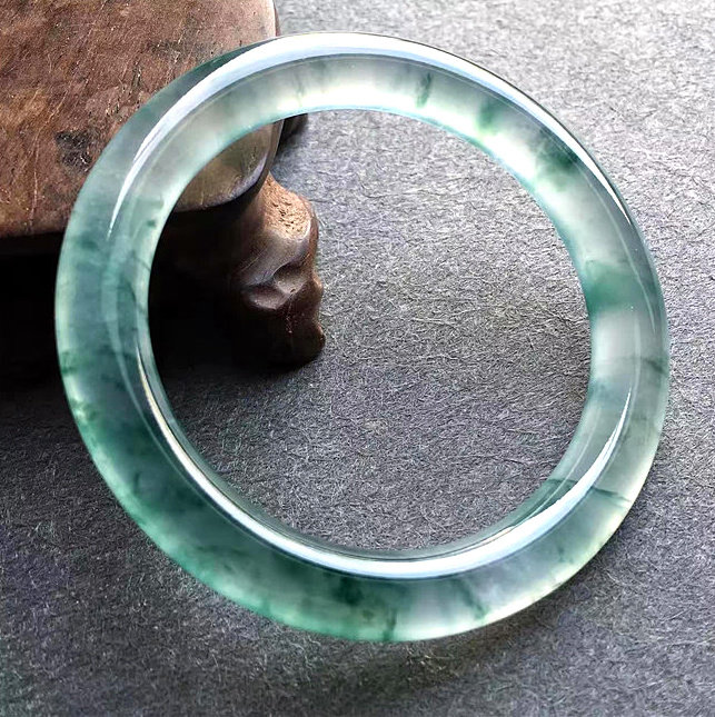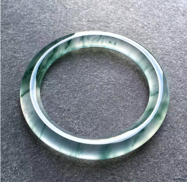 Natural Burmese ice flower blue flower jade bracelet round bar bar jade bracelet pendant female with evidence