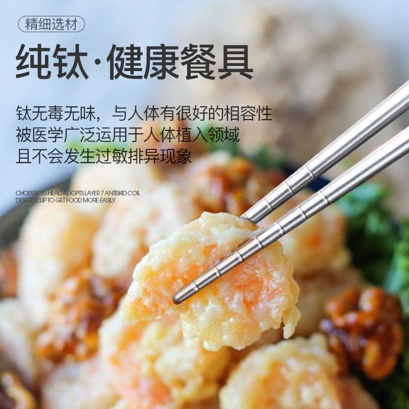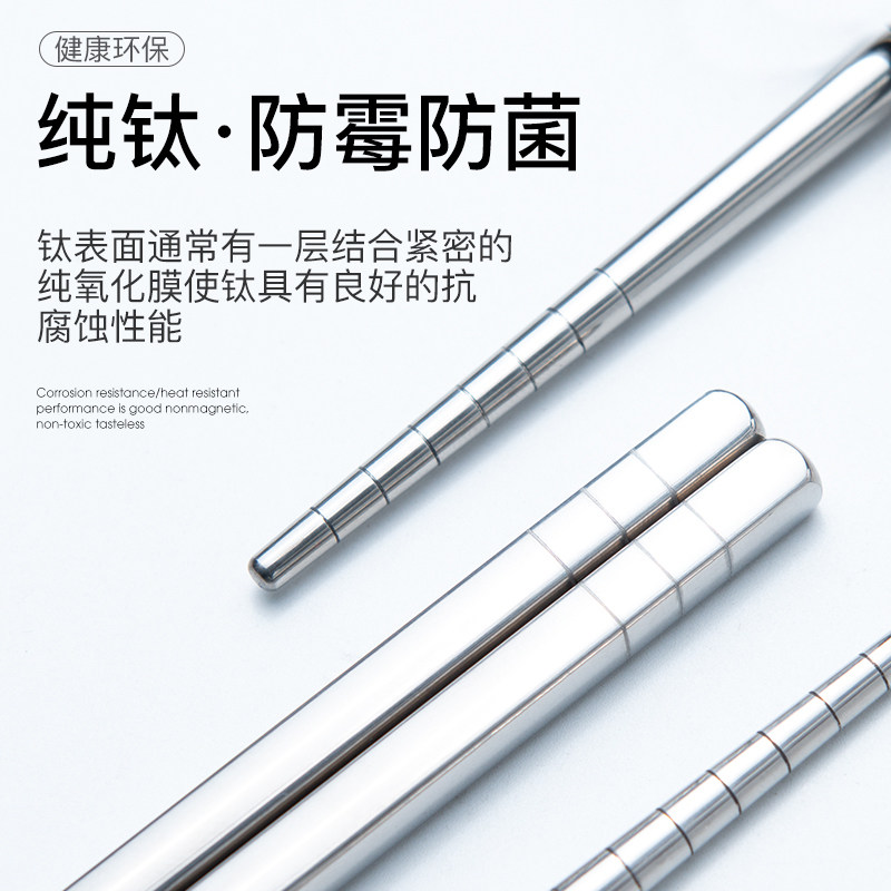 Pure titanium chopsticks Home anti-slip and anti-mildew antibacterial high-end cutlery metal quick sub-spoon fork family fit titanium alloy