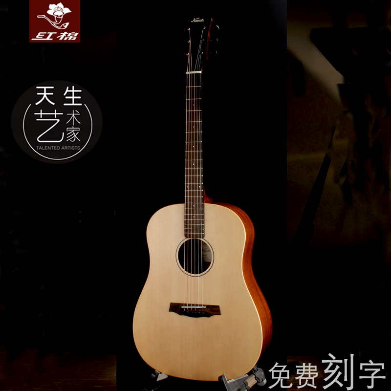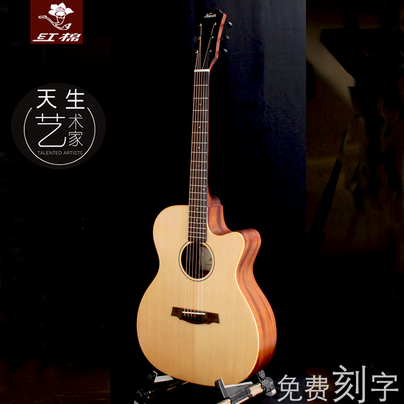 Red cotton guitar folk veneer 36 41-inch guitar 38 40-sided single primary students and men and women to start the new left-handed flashlight box