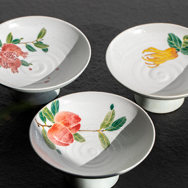 Landscape Room more than three High Foot Hand-painted Fruit Pan Pomegranate Suades handmade ceramic dish Home Snack Tray