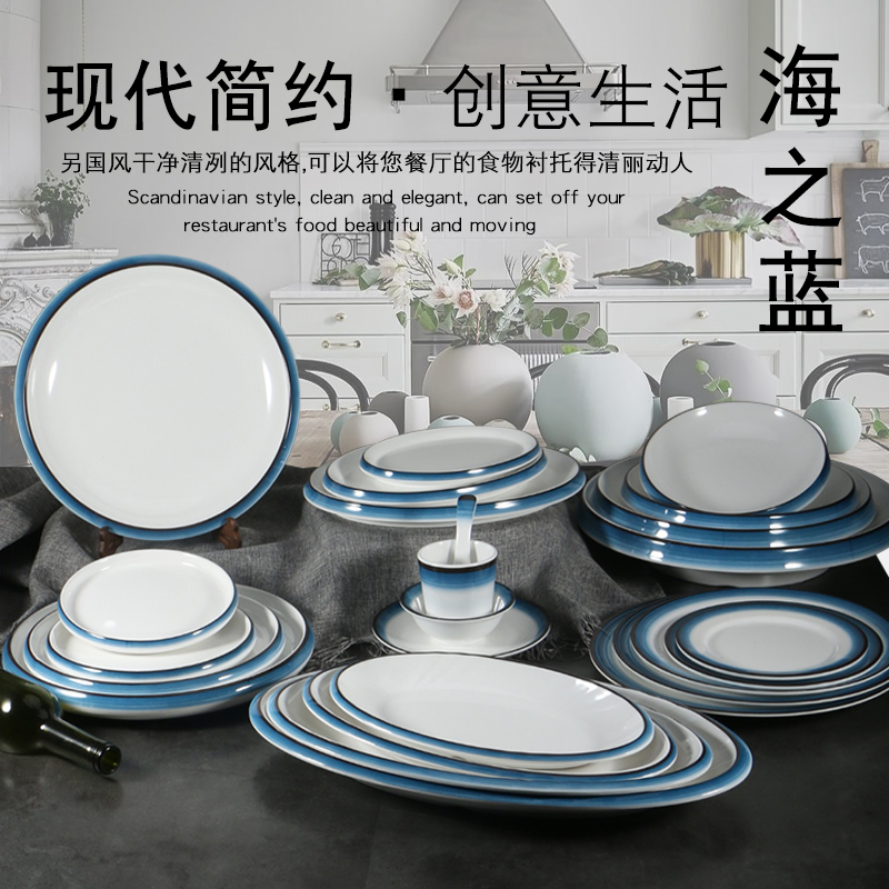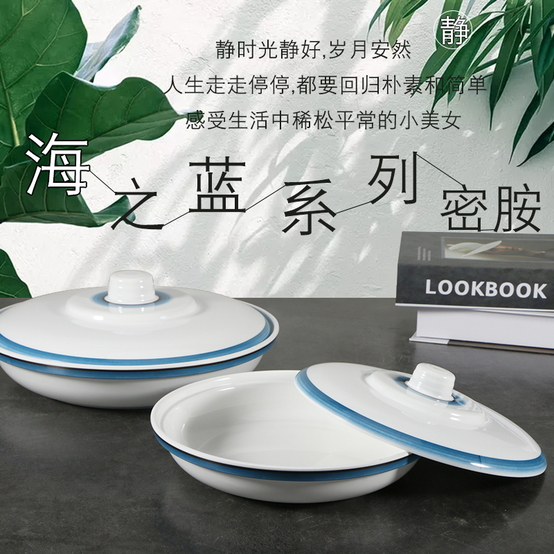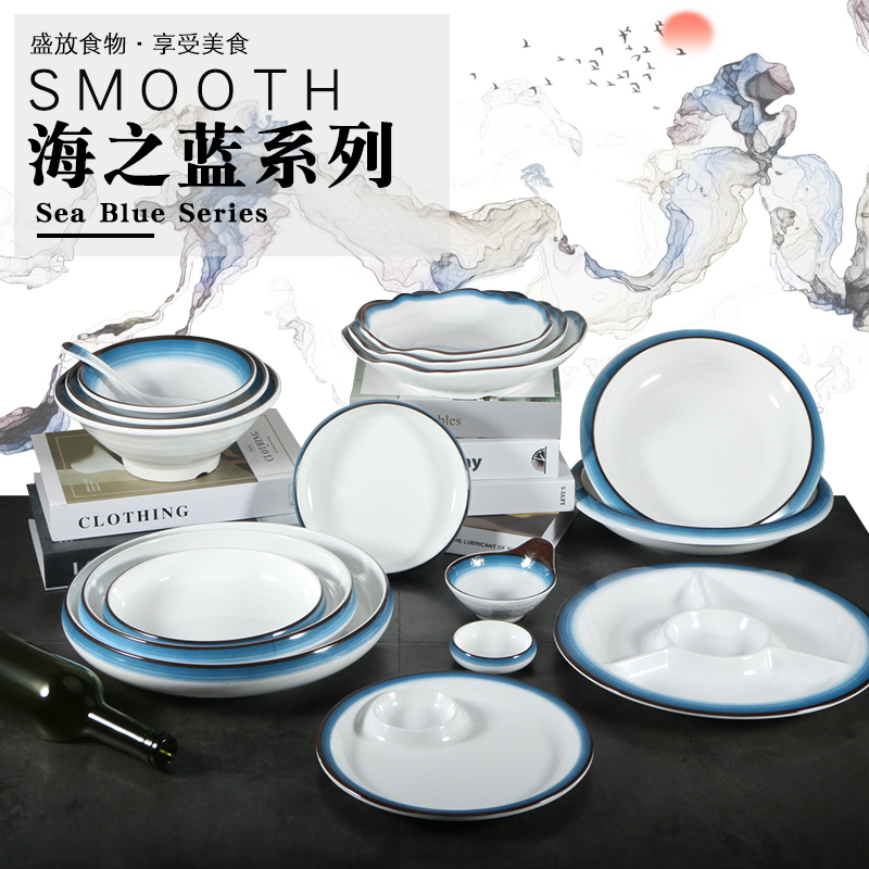 Melamine disc sea blue plastic plate imitation porcelain tableware commercial fast food plate cover rice cooking plate bone plate