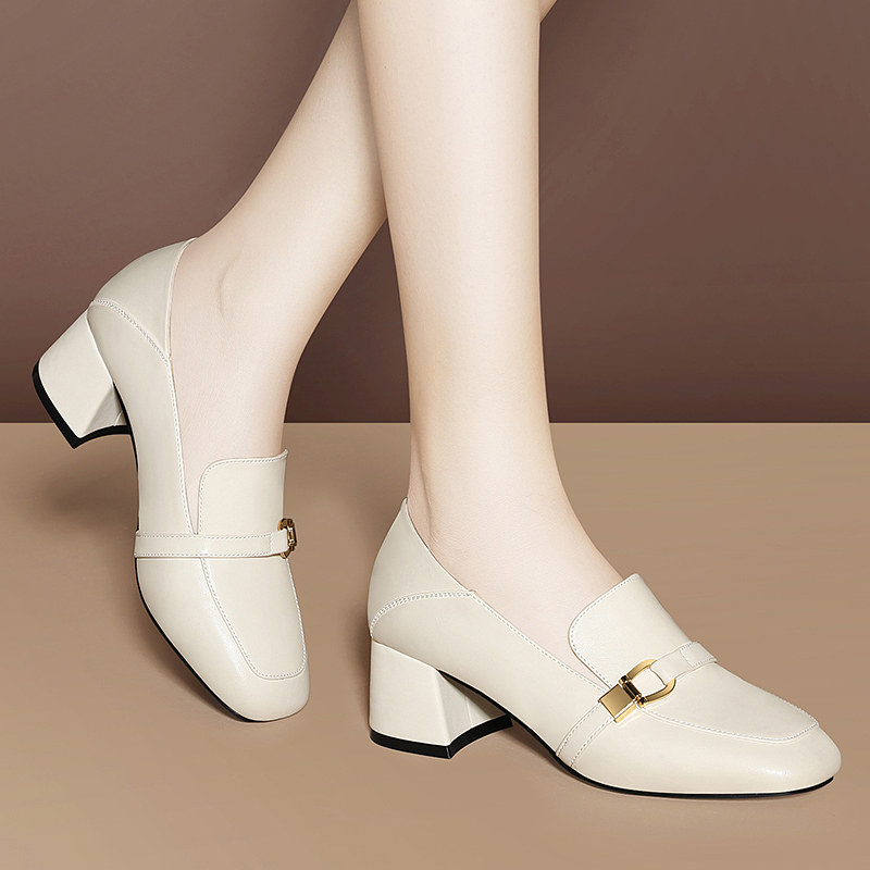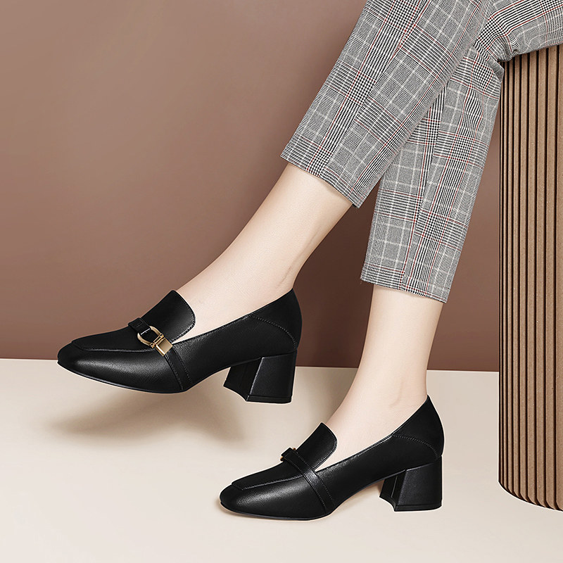 2021 spring new retro thick heel soft bottom square toe grandma shoes 2022 spring fairy shoes low heel shallow mouth shoes