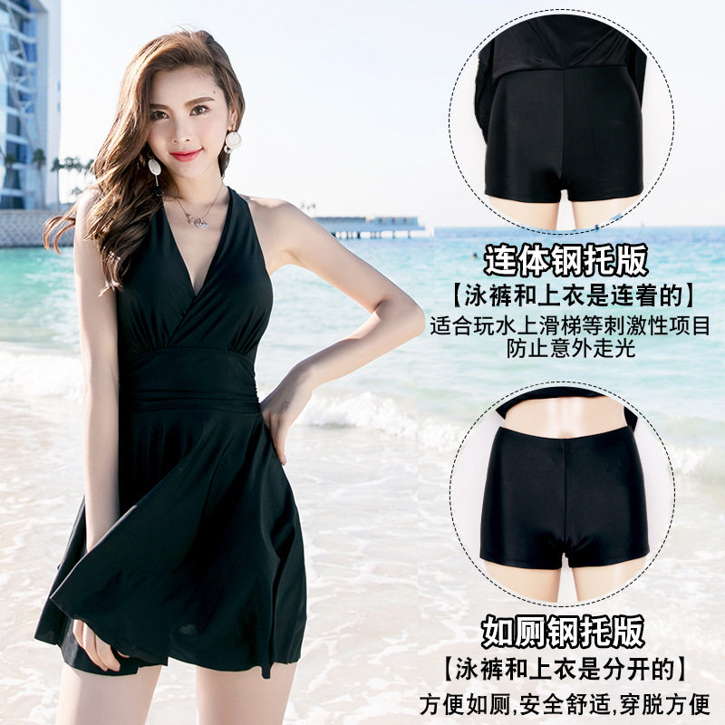upf50 Korean version of the swimsuit steel torso split swimsuit sexy women's flat angle conservative swimsuit Women's swimsuit spa