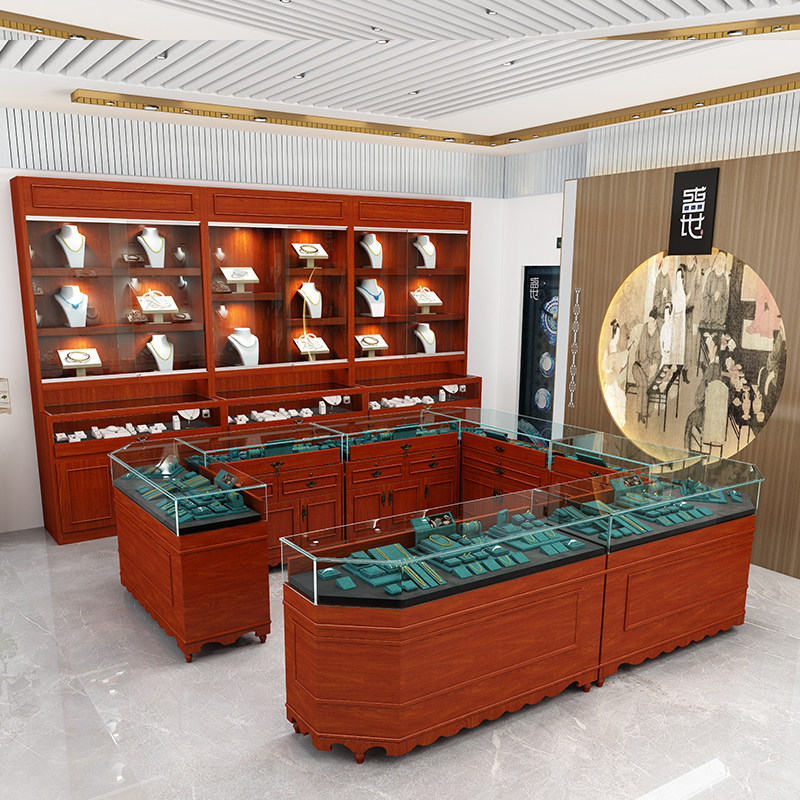 Retro Solid Wood Jewelry Exhibition Cabinet M Ancient Play Jade Ware Transparent Display Cabinet Jewellery Honey Wax Ornament Glass Middle Island Cabinet