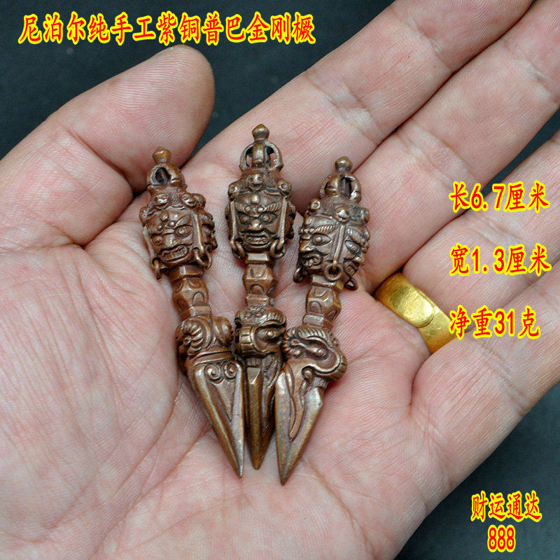 Tantric ritual vessel Nepal pure handmade copper Pupa Vajrapani Vajra pestle descending wand length 6.7 cm