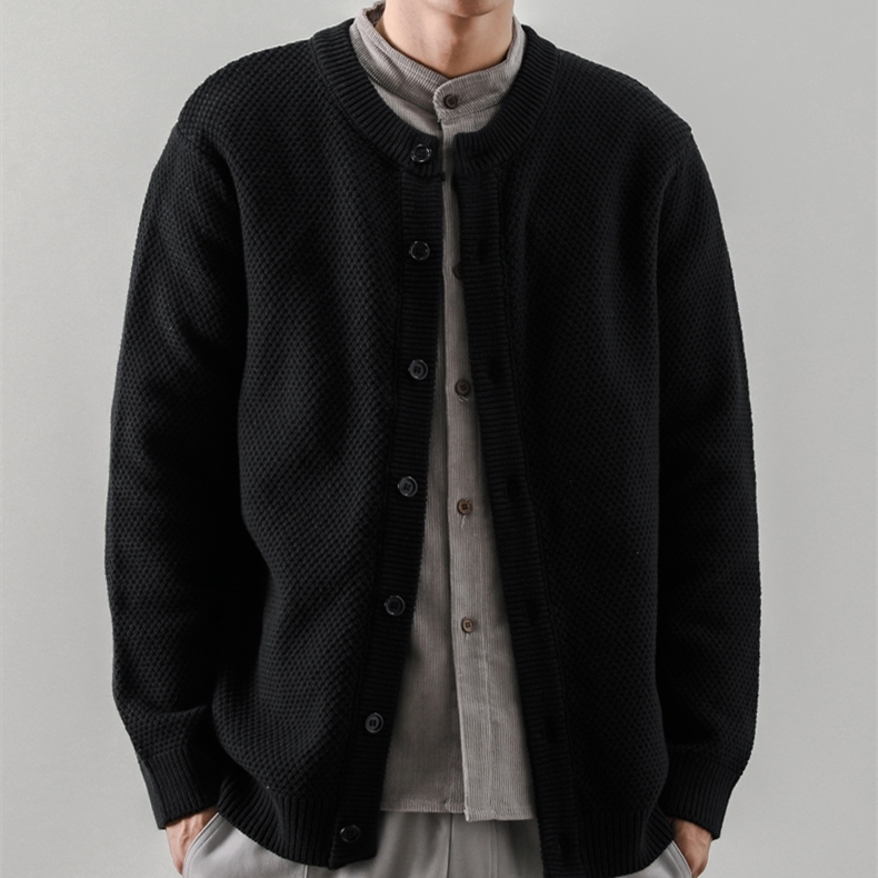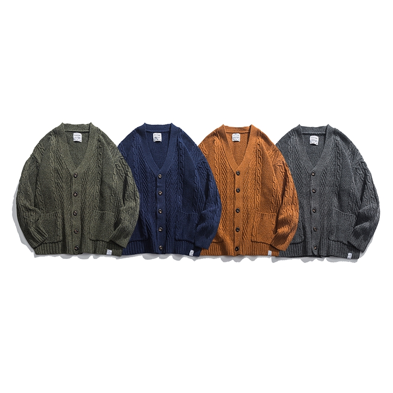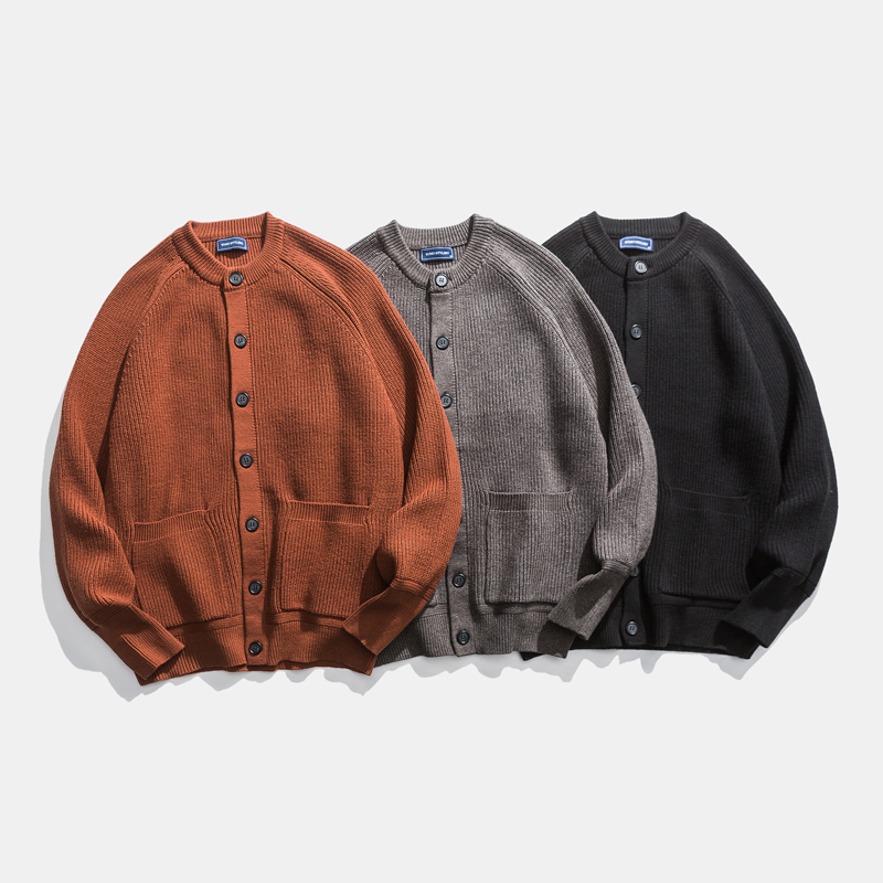 Autumn and Winter Sweater Tide Japanese Fashion Version Pure Color Thick Sweater Men Lax Round-collar Rough Knitted Sweater