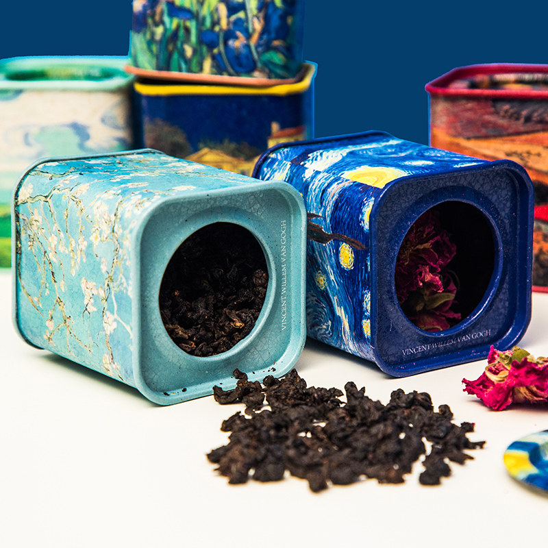 Sunflower tea leaf jars-small number of flowers tea leaf jars-small number starry night tea leaves-small number starred tea leaf jars-small apricot flowers tree tea leaf jars-small number of countryside small roads tea leaf jars-Little number yellow