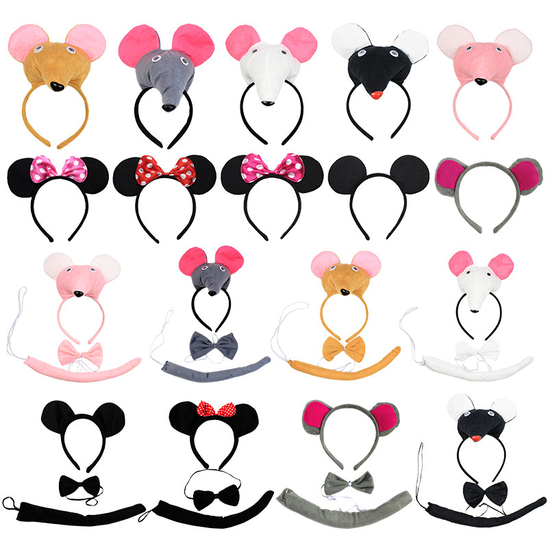 Common rat head decoration common rat head decoration New Minnie head decoration red minnie head decoration pink minnie head decoration rose red Mickey head decoration solid rat head decorated gray solid rat headwear white