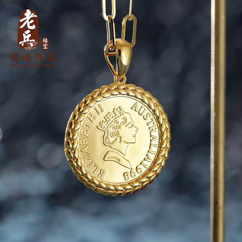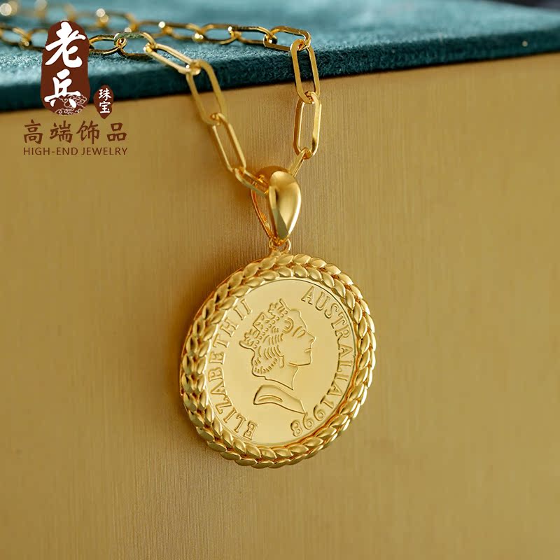 Jewelry 24K yellow gold couple pendant women hard gold 999 pure gold Ancient gold beads necklace for men and women live special shoot 1