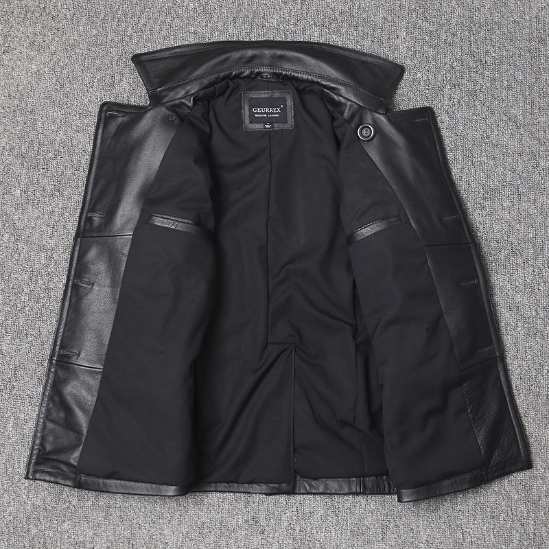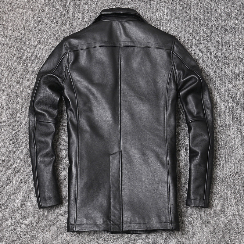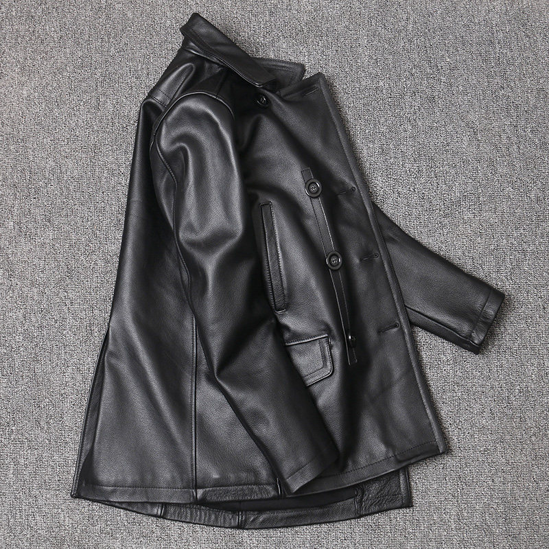 Genuine leather jacket men's first layer cowhide jacket mid-length men's lapel trench coat Korean style slim coat double breasted