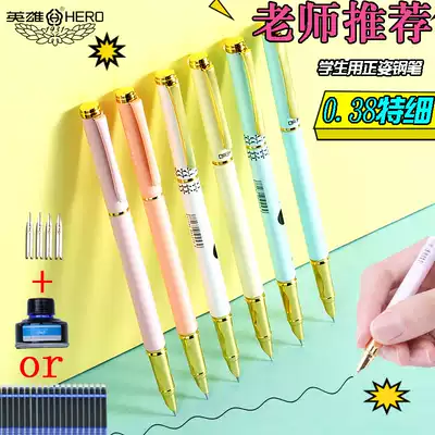 HERO hero affordable pen excellent grip posture practice 0 38 Extra-fine third-grade primary school student pen calligraphy special pen replaceable ink sac holiday gift gift pure blue ink for girls