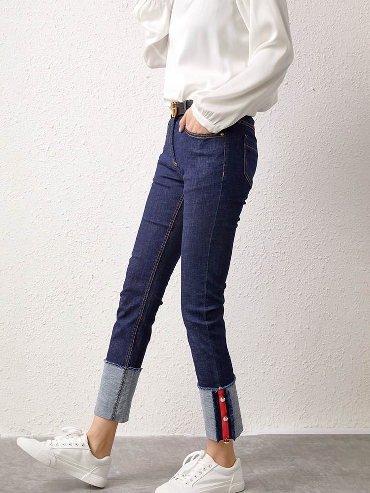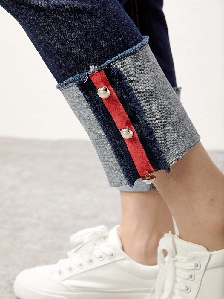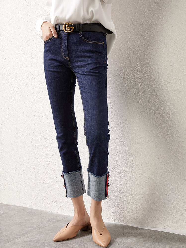 U Home Dark Blue High Waist Display Slim Jeans Casual 100 Lap Straight Barrel Pants Children Spring Autumn 2022 new Korean version