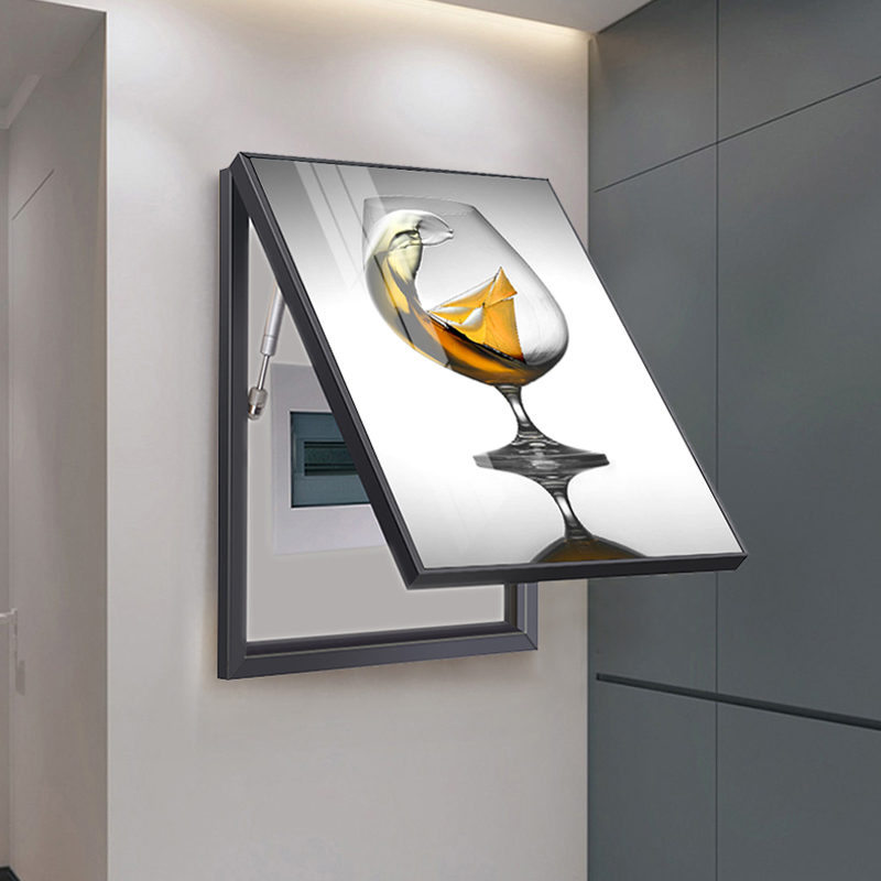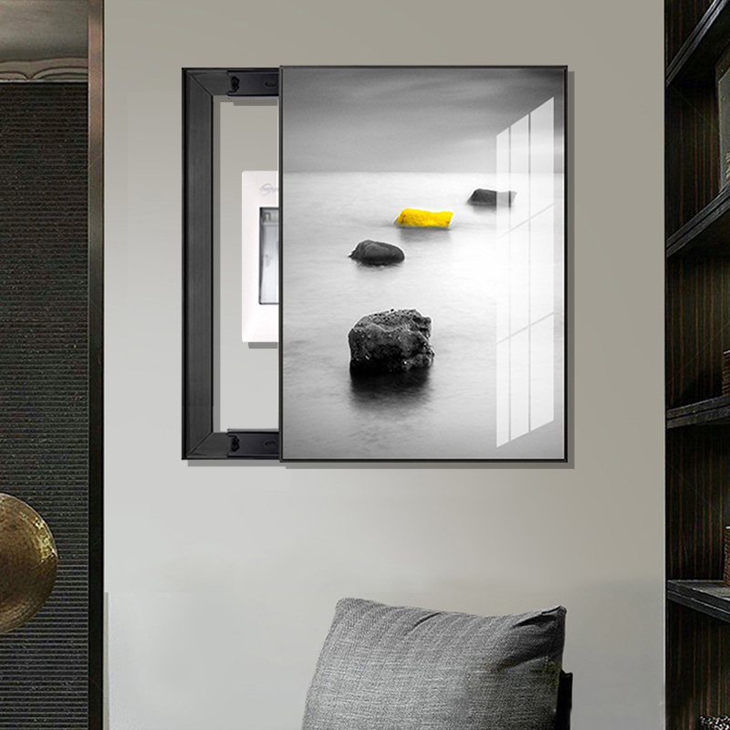 Electric meter box decorative painting vertical version of modern minimalist distribution box to block black and white gray light luxury weak switch box hanging painting Nordic