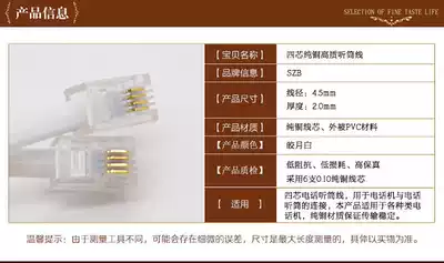 4P4C pure copper curved telephone line handset 2 meters handle line telephone packaging connection line manufacturer line single microphone